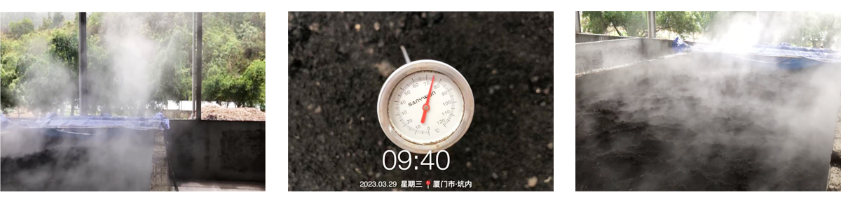 2.發(fā)酵過(guò)程內(nèi)部溫度超過(guò)60℃時(shí),開(kāi)始每天翻堆一次,溫度超過(guò)70℃時(shí),適當(dāng)增加翻堆次數(shù)。